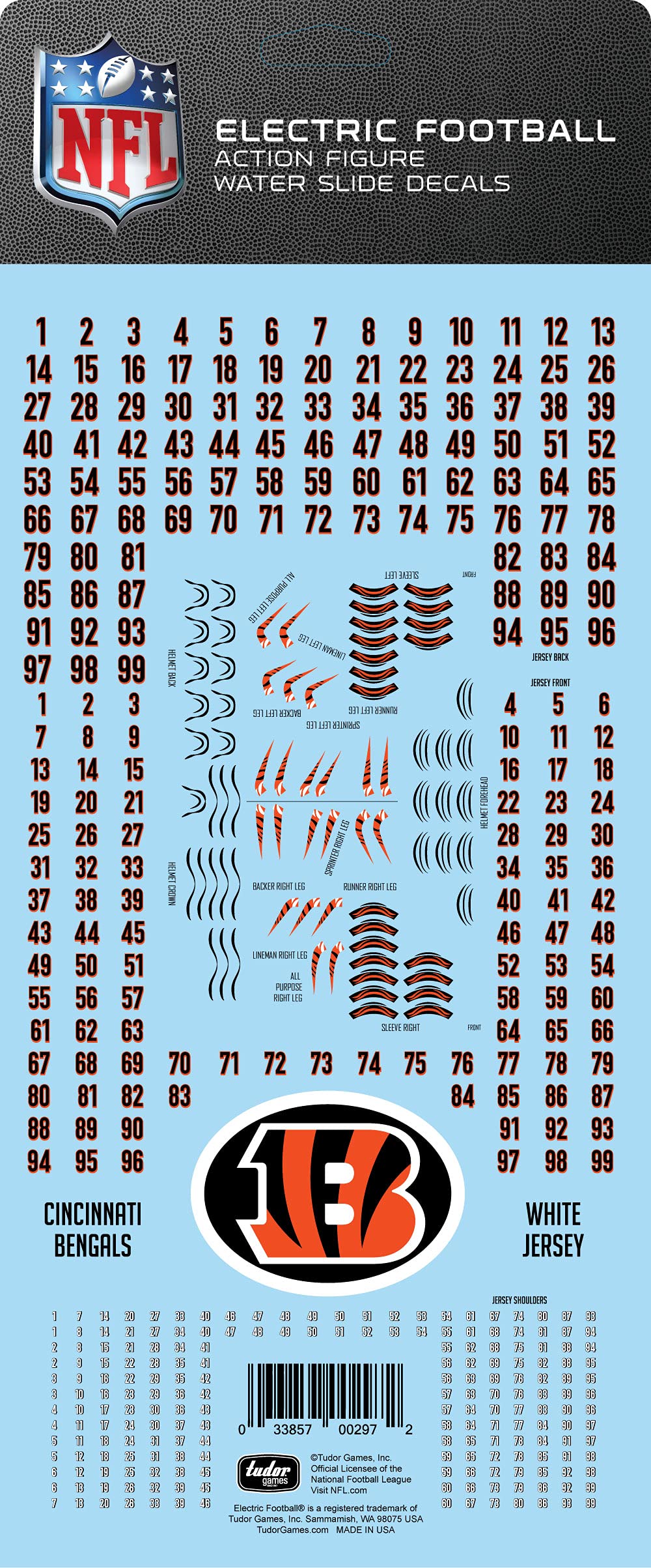 Amazon Com Tudor Games Cincinnati Bengals White Uniform Nfl Water Slide Decal Set For Electric Football Miniature Action Figures Sports Outdoors